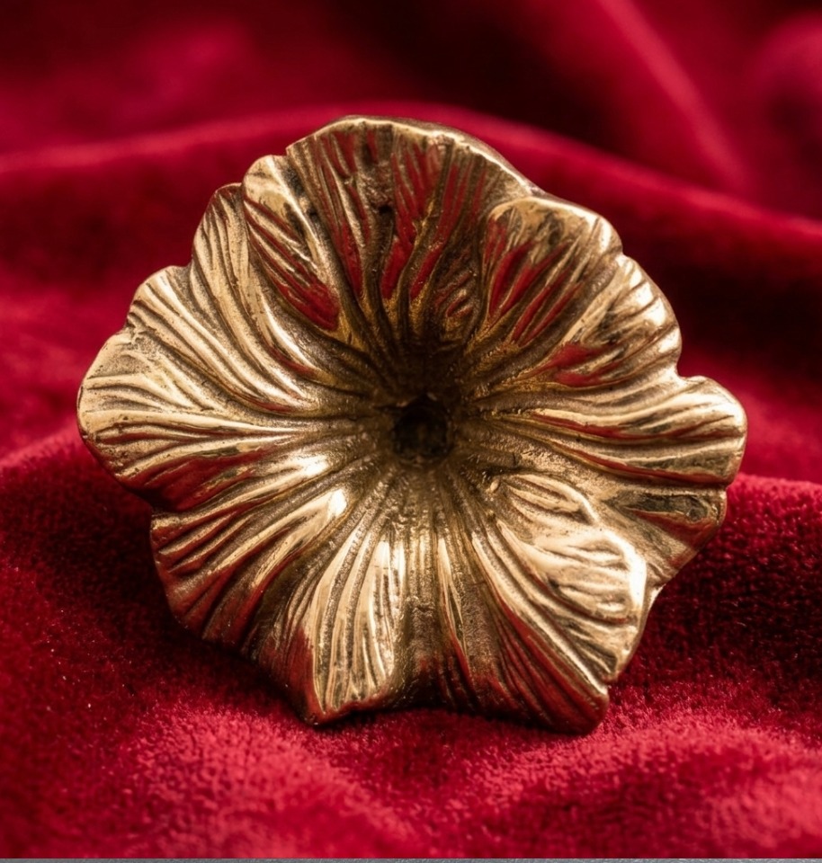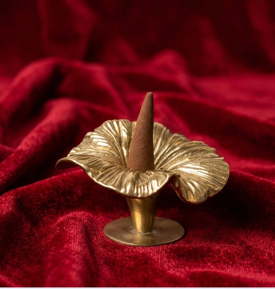 Add a touch of elegance to your space with the Droozy Flower Incense Cones Holder. Designed in a beautiful blooming flower shape with a golden finish, this handcrafted piece is perfect for holding incense sticks while enhancing your home décor. Its artistic design makes it both functional and decorative, ideal for puja, meditation, or daily use.